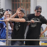 | ド軍の“逸品”は「どこで手に入る?」 世界一仕様が密かな話題…公式SNSでファン発見 ドジャースナインはこの日、全員お揃いのワールドシリーズ優勝記念Tシャツで登場。沿道に詰めかけたファンに手を振り、大谷翔平投手は真美子夫人と共に参加。山本由伸、佐々木… (出典:Full-Count) |