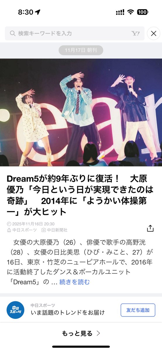 @SANSPOCOMDream5、デビュー15周年で活動終了から9年ぶり復活「ようかい体操第一」は「体に染みついている」 sanspo.com/article/202511…