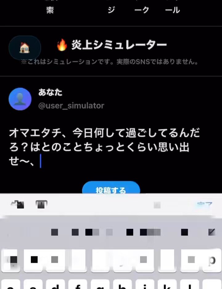 @kirara_yade返信先:@mtor_info 炎上シュミレーターで誰が1番炎上するか配信やってほしいです🔥🔥 ポスト内容に対してどんなリプが来るかAIがシミュレーションしてくれるんですけど、絶対面白いと思うWWWWWWWWWWW 架空ポストを考えてきて炎上王を決めたり、ファミリーの過去のポスト分析するとかもいいと思います!😂